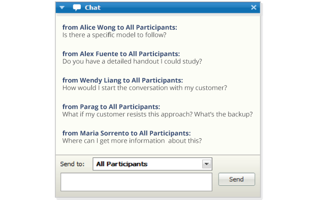 In this Chat discussion example, the presenter can see where the audience is getting confused.